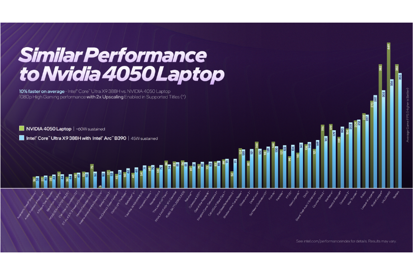 Durch die neue 18A-Halbleiterstruktur soll laut Intel aber dennoch deutlich verbesserte Leistungswerte erzielt werden: Das Flaggschiff der Panther Lake-Prozessoren, der Core Ultra X9 388H, liefert bis zu 60% verbesserte Multithread-Leistung als noch der Ultra 9 285H der Lunar Lake-Ära. Für Gaming-Anwendungen ist sogar von 76% die Rede. Intels Core Ultra 300-Serie erreicht auf dem Papier also beeindruckende Leistungsverbesserungen bei ebenfalls stark verbesserter Energieeffizienz.