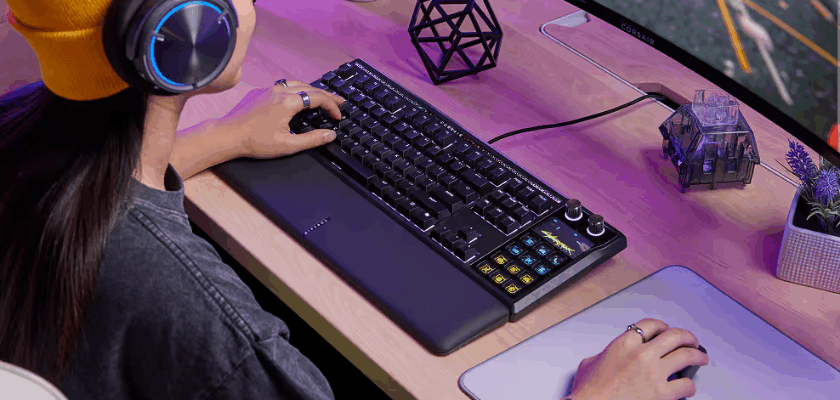 Die Tastatur erreicht durch Corsairs hauseigene AXON-Technologie Polling-Raten von bis zu 8.000 Hz und sorgt so für nahezu verzögerungsfreie Eingaben.