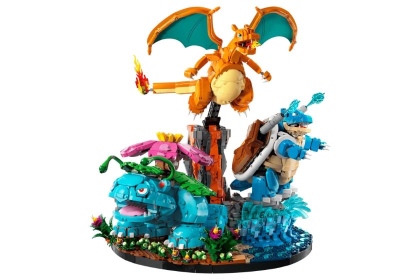 Bisaflor, Glurak und Turtok – die Endentwicklungen der ersten drei Starter haben ebenfalls ein eigenes LEGO-Set spendiert bekommen. Dieses setzt sich aus insgesamt 6.838 Einzelteilen zusammen. Dabei thront jedes Pokémon in einem passenden Biom. Bisaflor im Dschungel, Turtok am Strand und Glurak auf einem Vulkan.
