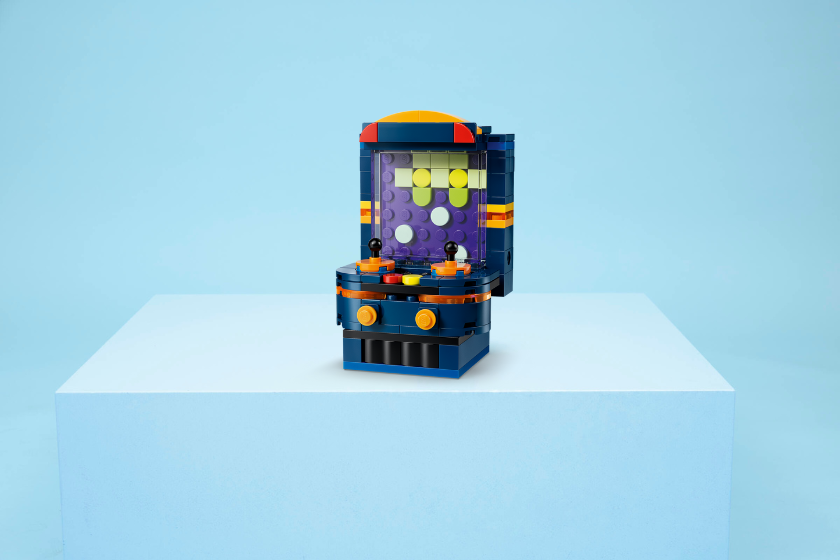 Wie für die „3-in-1“-Reihe typisch, bleibt es aber nicht bei nur einem Modell. Wer das Handheld-Design nicht nutzen möchte, kann das Set in zwei vollkommen verschiedene Alternativmodelle umbauen. Möglich ist ein Mini-Arcade-Automat, der den Stil klassischer Spielhallenautomaten nachahmt – inklusive Bildschirm und markanter Arcade-Silhouette.