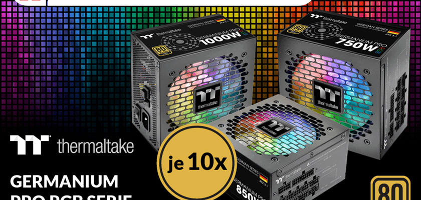 - 10x Thermaltake Germanium Pro RGB 850W, PC-Netzteil (schwarz, 1x 12-Pin High Power GPU, 4x PCIe, Kabelmanagement, 850 Watt)