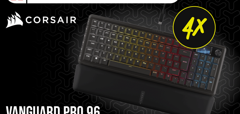 Die Corsair Vanguard PRO 96 ist eine leistungsstarke mechanische Gaming-Tastatur, die für Wettkampfspieler entwickelt wurde. Sie bietet magnetische MGX Hyperdrive Hall-Effekt-Schalter mit Dual-Actuation-Unterstützung sowie 8.000-Hz-Hyper-Polling für eine bessere Reaktionsfähigkeit. Der optimierte Formfaktor von 96 % bietet Pfeiltasten, einen Nummernpad, ein 1,9-Zoll-LCD-Display, sechs programmierbaren G-Tasten und einen Drehknopf auf einer Gesamtfläche, die einer TKL-Tastatur ähnelt.