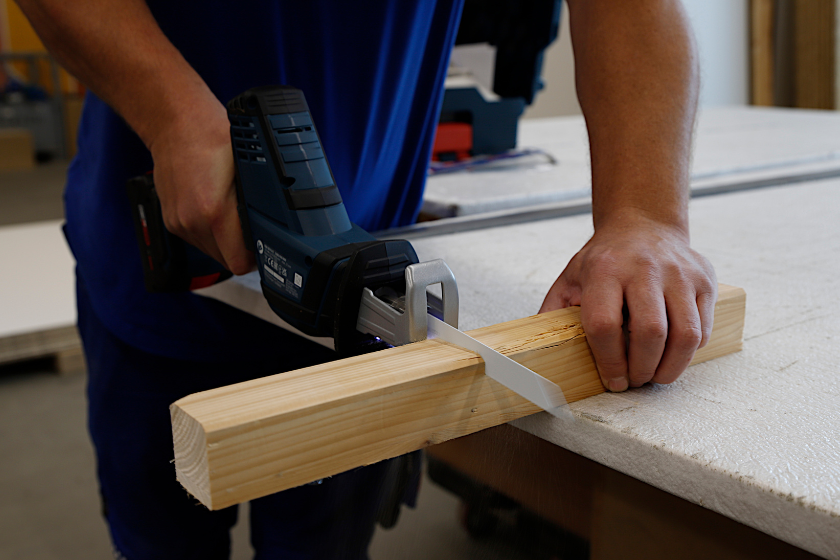 Für den Test durfte die GSA 18V-LI C an Holz, Aluminium, Stahl und besonders harte Fassadenplatten ran. Schon beim ersten Schnitt zeigt sich: Die Maschine hat ordentlich Kraft. Für eine Akku-Säge ist sie beeindruckend stark.